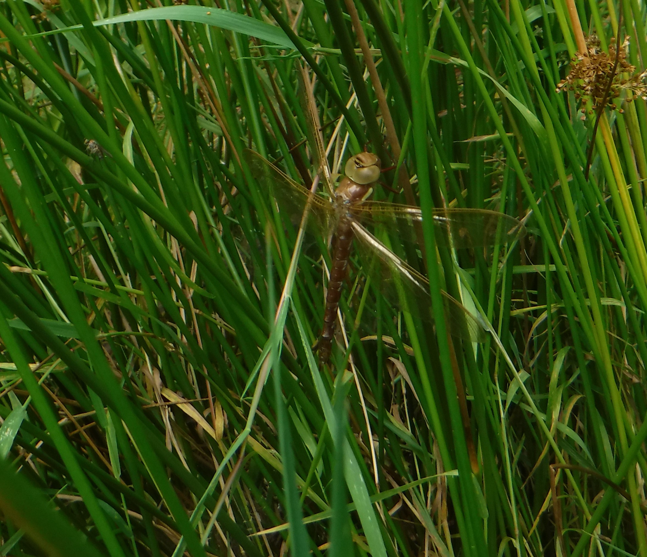 Three more dragonfly species appeared this month, bringing our total to 17 species. On July 1st we saw a brown hawker patrolling the lake on a sunny morning. On the 20th, our first willow emerald appeared on a goat willow beside a woodland pond, and on July 26th the first migrant hawker appeared alongside our wood. This brings our running total to 17 so far.